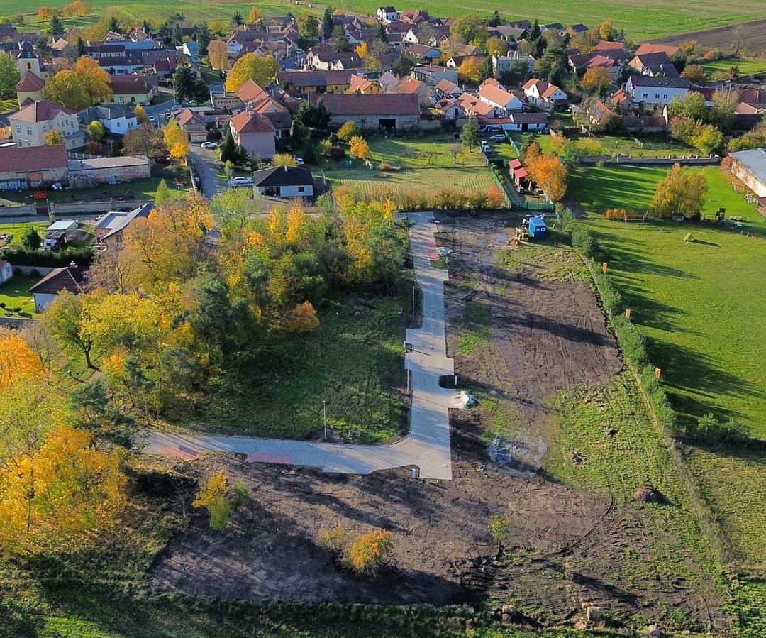 Projekt disponuje zpěvněnou příjezdovou cestou, pouličním osvětlením a vjezdy k pozemkům