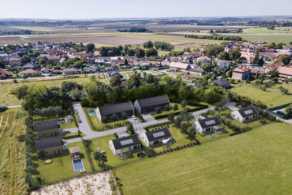 Ucelené území nabízí 8 parcel velikostí od 807 m² po velkorysých 1030 m²